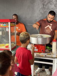 Oferecemos atendimentos gratuitos para crianças autistas, pais atípicos e adultos, com equipe de neuropsicopedagoga, pedagoga, psicóloga e terapeuta. Realizamos cursos de música, artesanato, empreendedorismo e formações em parceria com instituições renomadas. Promovemos ações solidárias ao longo do ano, como Páscoa, Dia das Crianças, Dia das Mulheres, Dia dos Pais, campanhas de inverno e eventos especiais para toda a comunidade
